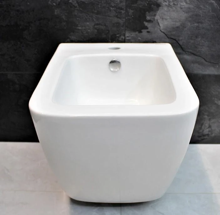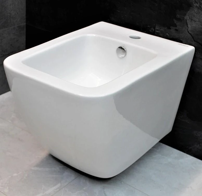 DUSEL CUBIS 10201030B — стильне підвісне біде прямокутної форми, створене для сучасних ванних кімнат. Високоякісний санфарфор, безобідкова конструкція та покриття ExtraClean забезпечують максимальну гігієнічність і простоту догляду.