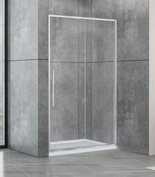 Тонкий алюмінієвий профіль у кольорі хром виглядає елегантно та впишеться в будь-який інтер’єр. Загартоване скло товщиною 6 мм забезпечує міцність і безпеку, а подвійні латунні приховані ролики гарантують плавний та безшумний хід.