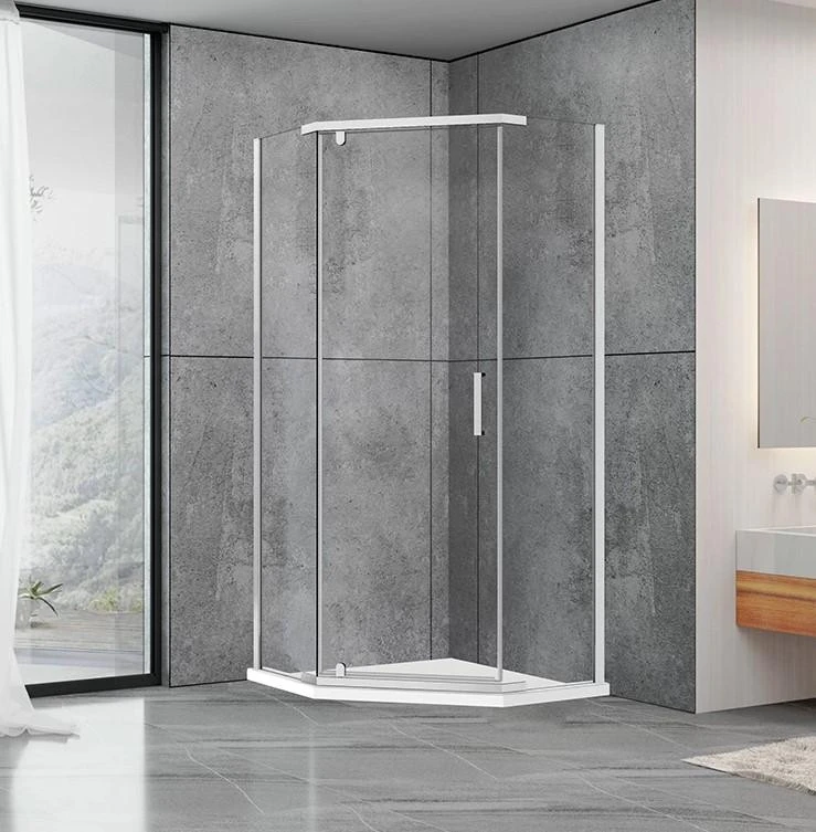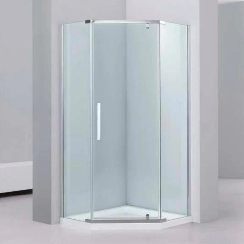 Душова кабіна Dusel А-1105 п'ятикутна, має одні розпашні двері на металевих петлях. У кабіни універсальне розташування двері (можливий як лівобічний, так і правобічний монтаж)
