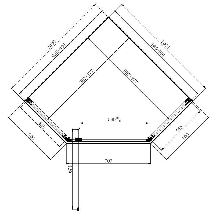 Душова кабіна Dusel DL197H Chrome у формі п'ятикутника з прозорим склом розміром 1000x1000x1900 мм має наступні характеристики: