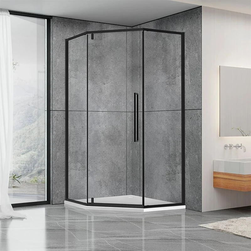 Додайте вашій ванній кімнаті витонченості з п’ятикутною душовою кабіною Dusel DL197HB. Поєднання трендового чорного матового профілю та кришталево прозорого гартованого скла створює ефект легкості, водночас підкреслюючи сучасний інтер'єр у стилі Loft або Modern.