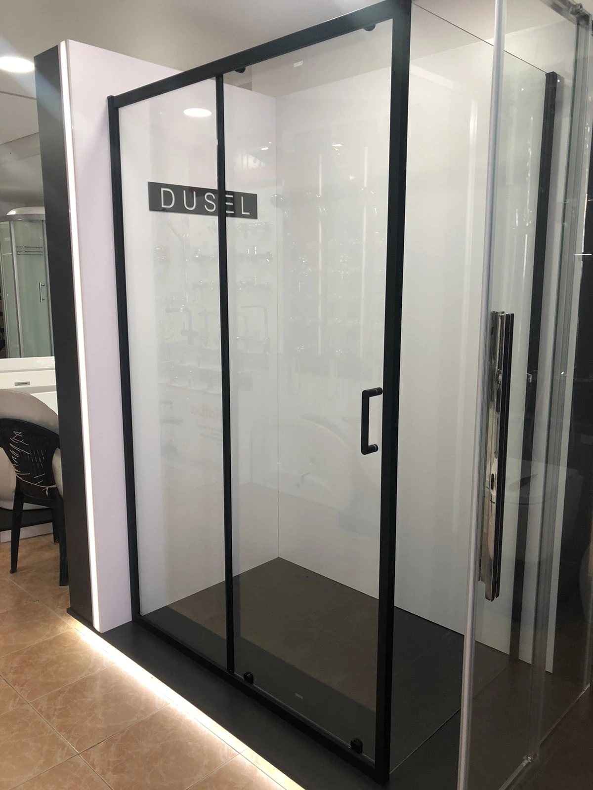 Ця кабіна має чорний матовий профіль з алюмінію, що додає їй сучасний і стильний вигляд. Прозоре скло товщиною 6 мм надає кабіні легкості та прозорості, створюючи відчуття простору в вашій ванній кімнаті.