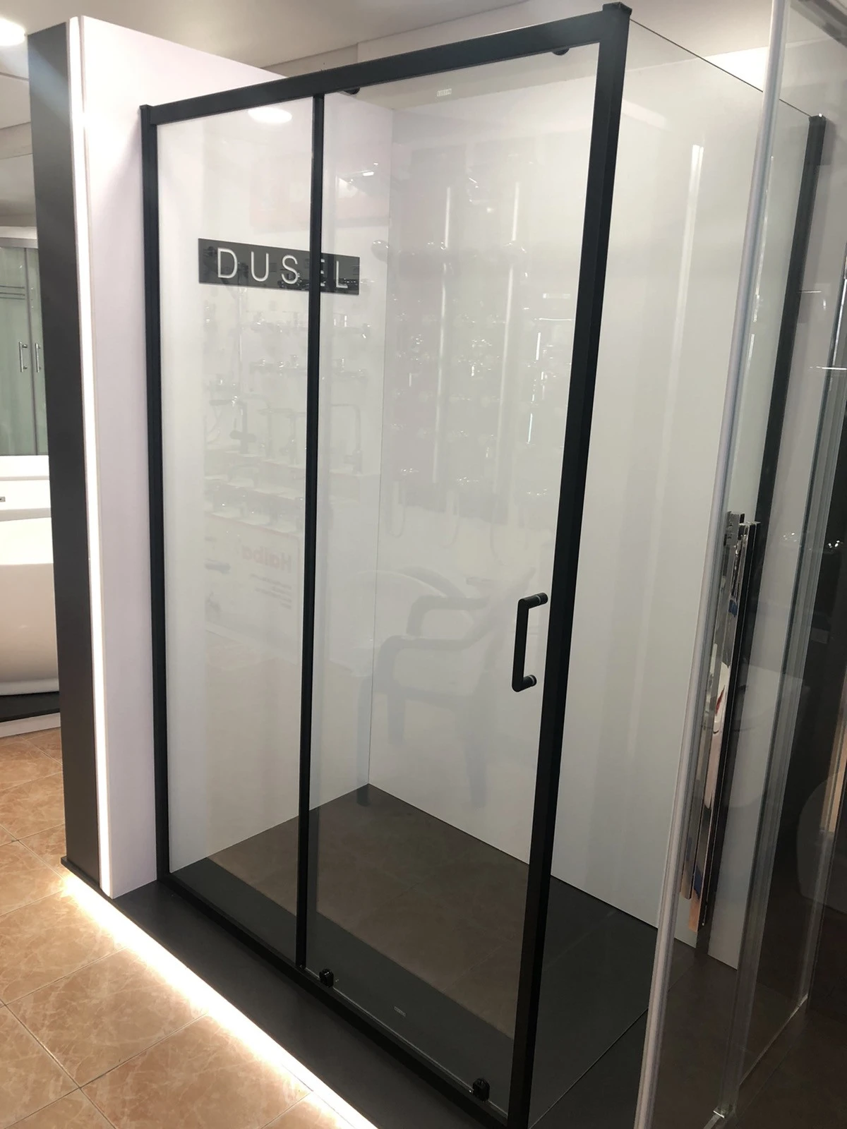 Душова кабіна Dusel EF185B/EF181B Black Matt вражає своєю елегантністю та функціональністю. Завдяки розмірам 120х90х190 см вона ідеально підходить для ванних кімнат різного розміру, забезпечуючи комфорт та зручність використання.