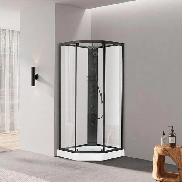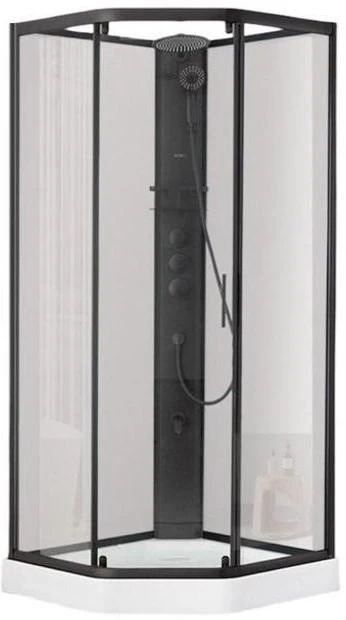 Стильний і функціональний душовий бокс DUSEL GLARE поєднує витончений мінімалізм і сучасні технічні рішення. Прозоре скло, матовий чорний профіль і оригінальна п’ятикутна форма створюють естетичний акцент в інтер’єрі, а продумана комплектація забезпечує максимум зручності щодня.