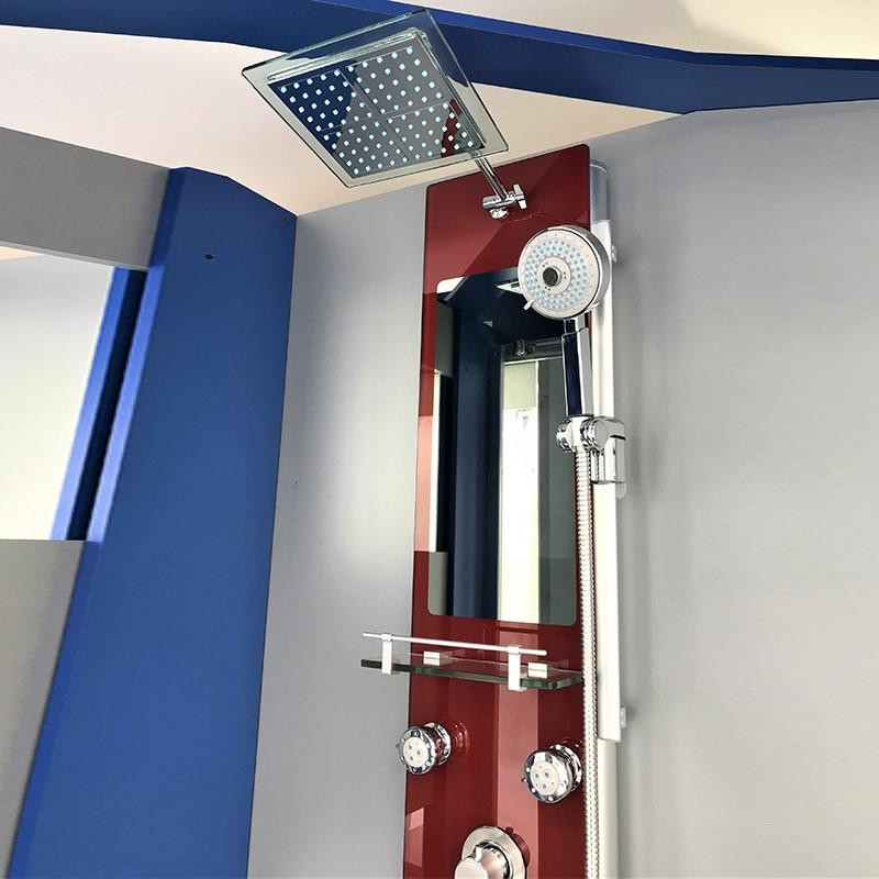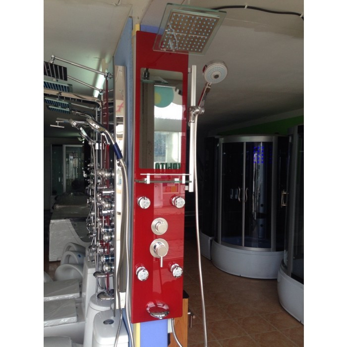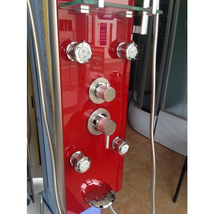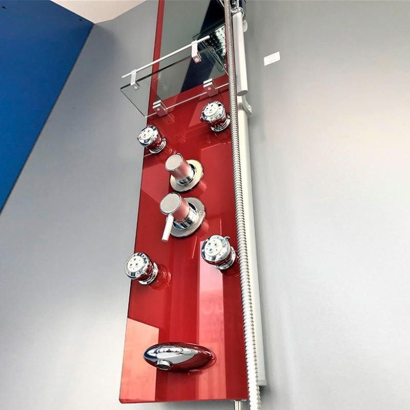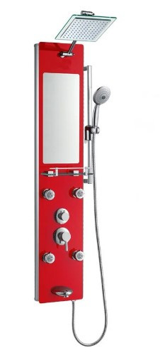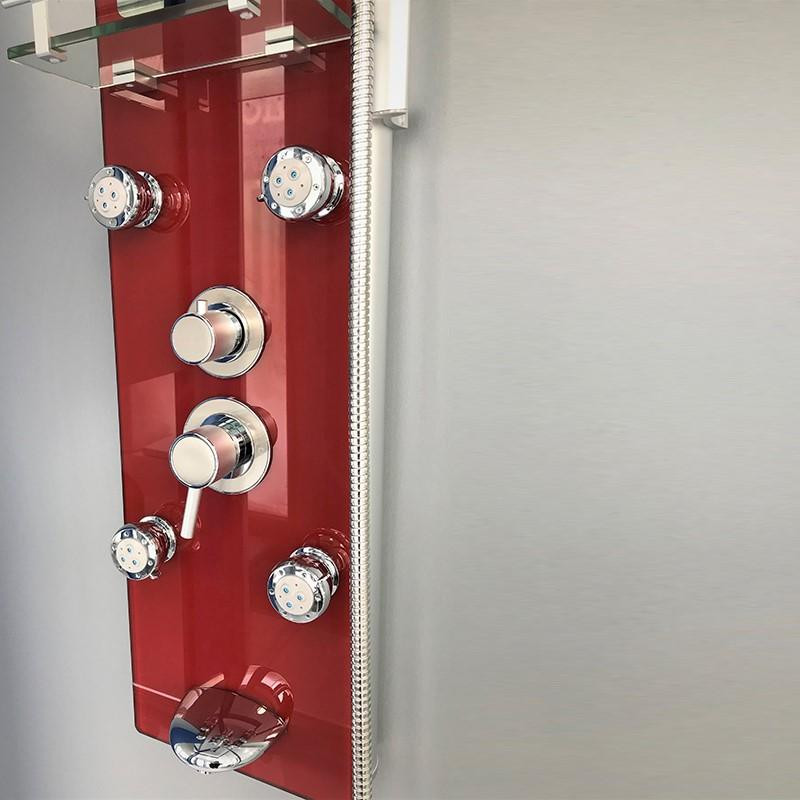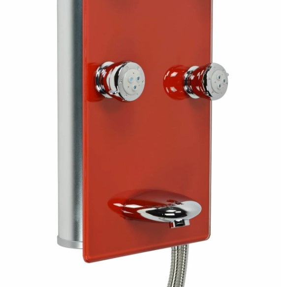 Гідромасажна панель Dusel DU616351R в червоному кольорі зроблена з алюмінію і загартованого скла.