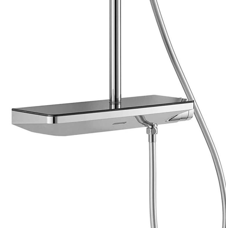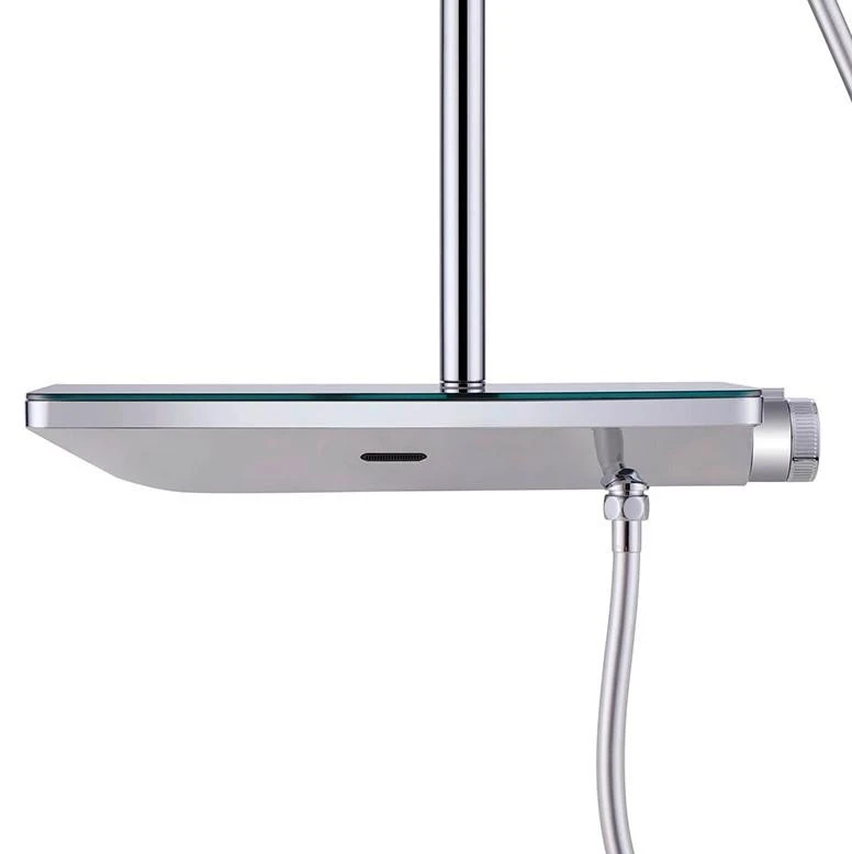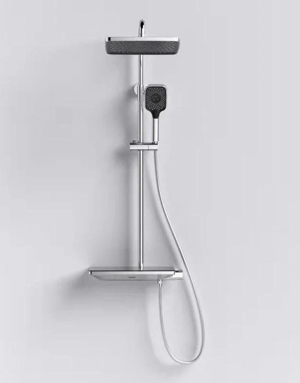 Система оснащена вбудованою полицею оптимального розміру (38×14 см) для аксесуарів та двома видами душових лійок — верхньою та ручною — для зручного приймання душу.