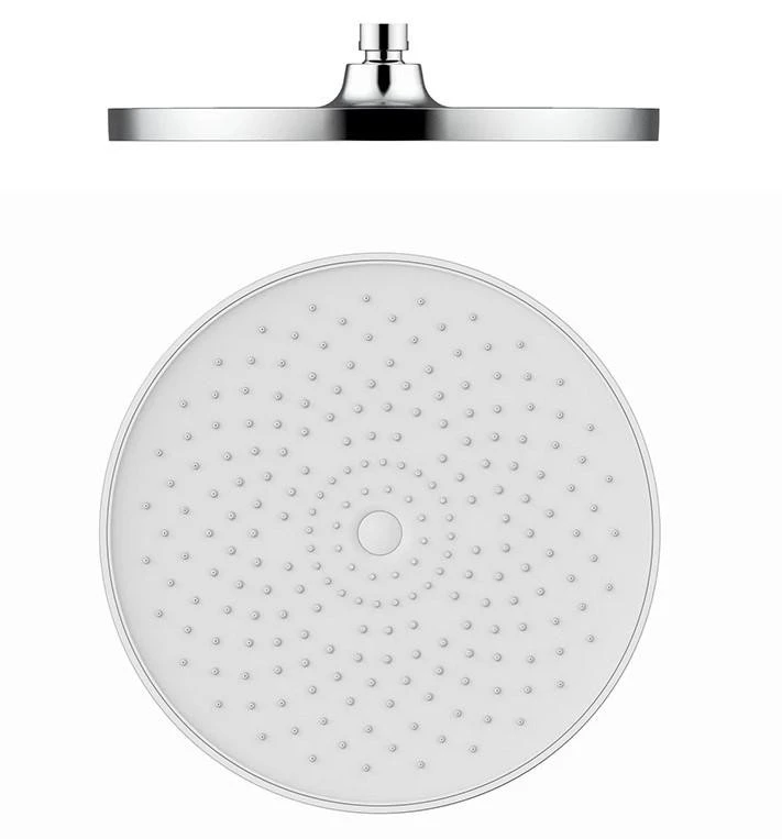 У системи круглий верхній душ, що регулюється по нахилу, з функцією тропічний дощ. Діаметр 25 см.