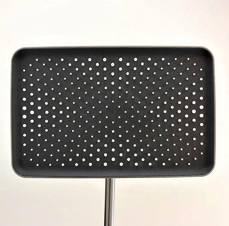 - У системи прямокутний верхній душ, що регулюється по нахилу, з функцією тропічний дощ.
