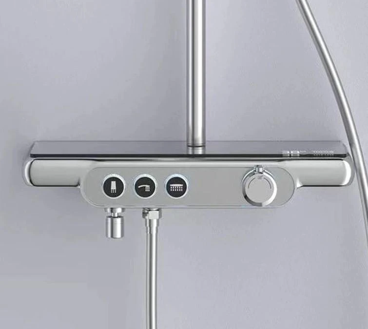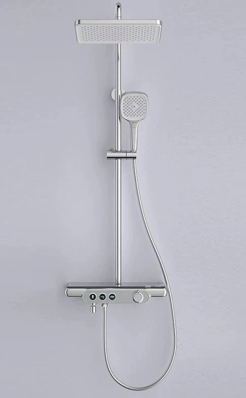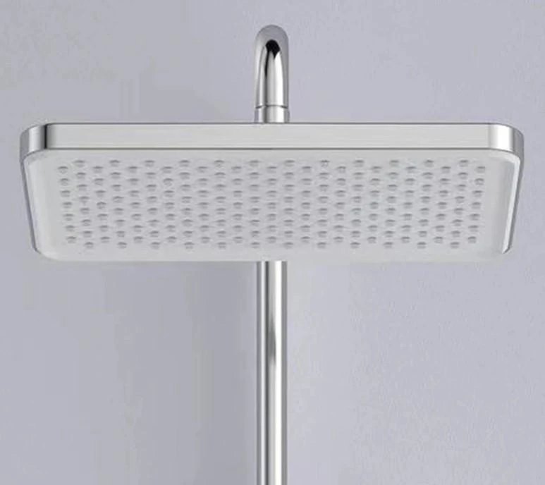 Система має прямокутний верхній душ із регулюванням нахилу та функцією тропічний дощ. Розмір верхньої лійки 34х22 см.