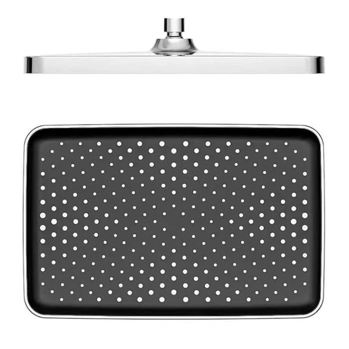 🌧️ Прямокутний "Тропічний дощ": Верхня лійка розміром 34х22 см з регульованим кутом нахилу забезпечує повне охоплення тіла м'яким потоком води, імітуючи природну зливу.