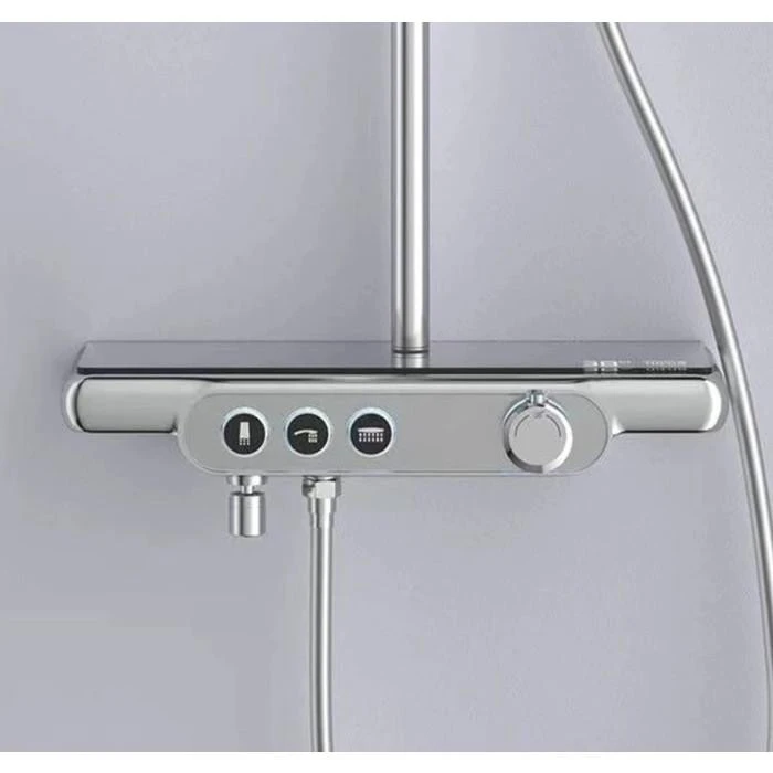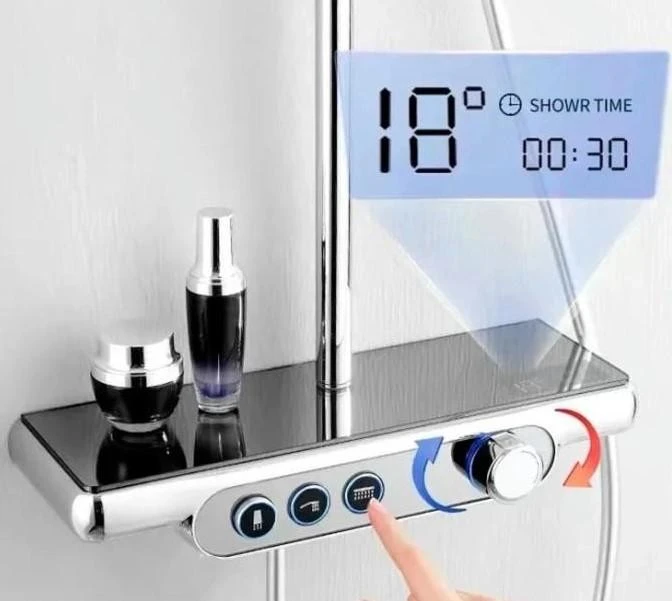 💡 DUSEL POUR Chrome Smart — це вибір для тих, хто шукає компроміс між стилем "мінімалізм" та максимальною функціональністю. Вбудована полиця та система підсвітки виділяють цю модель серед конкурентів. Завдяки латунному змішувачу та виливу, ця система є одним із найкращих рішень для повноцінного оновлення душової зони в преміальному сегменті.