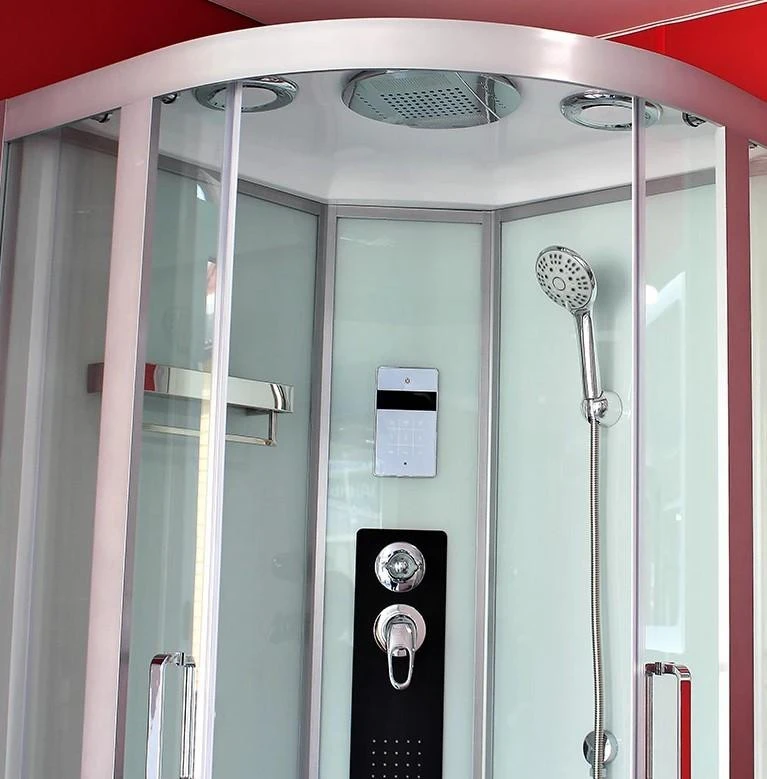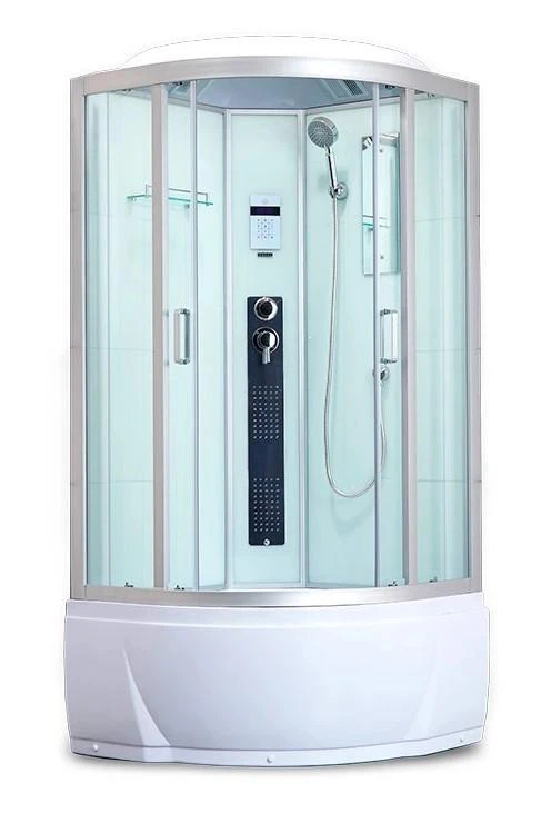 Гідромасажний бокс Dusel DSC-DU511-90H, кутова напівкругла модель з глибоким піддоном в розмірі 90х90 см.