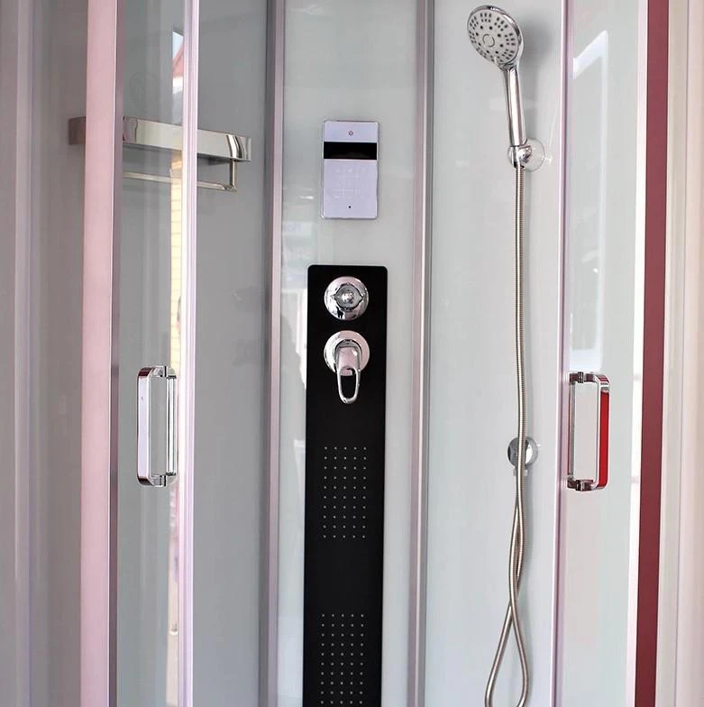 Бокс оснащений функцією гідромасажу, комплектується аксесуарами у вигляді невеликого дзеркала, полки для шампуню, ручок, а також електронною панеллю управління, за допомогою якої можна управляти функціями витяжки, радіо, LED підсвічування. Піддон йде в комплекті з сифоном. Змішувач зроблений з латуні, гідромасажна панель з нержавіючої сталі. Верхній душ має функцію "тропічний дощ".
