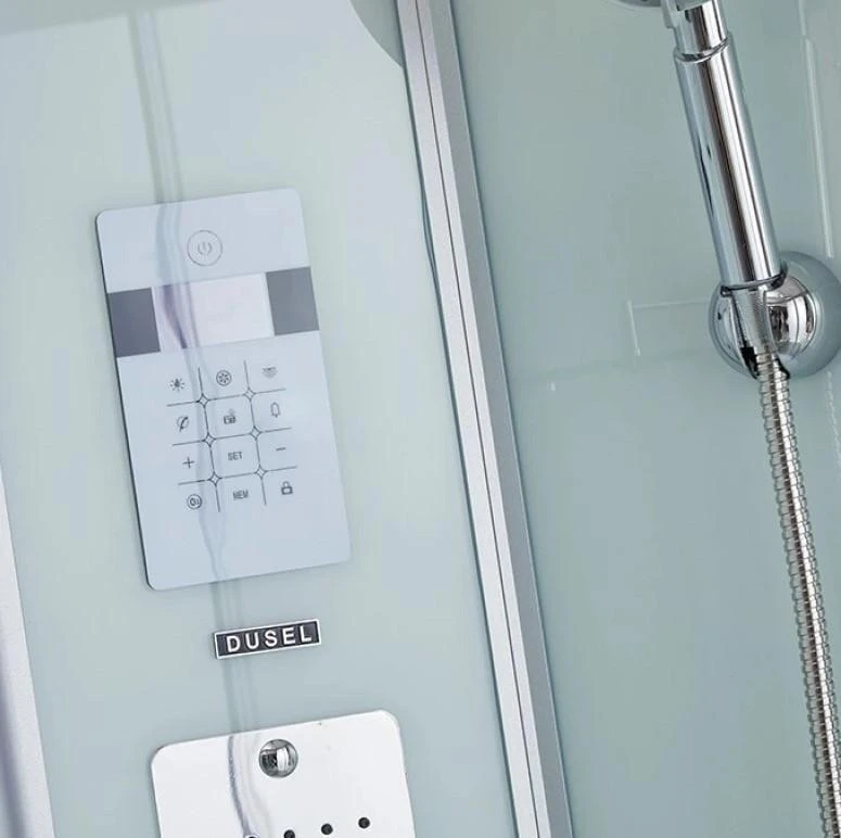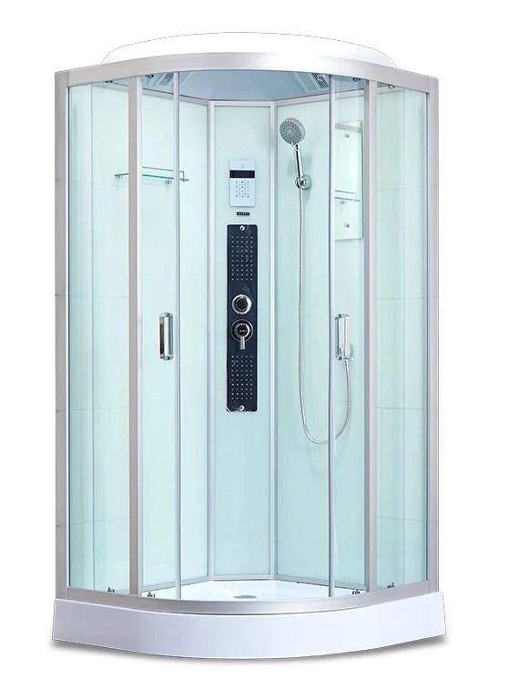 Гідромасажний бокс Dusel DSC-DU511-100S, кутова напівкругла модель з дрібним піддоном в розмірі 90х90 см.