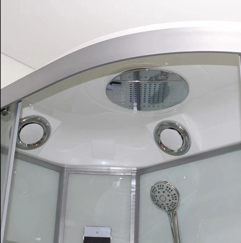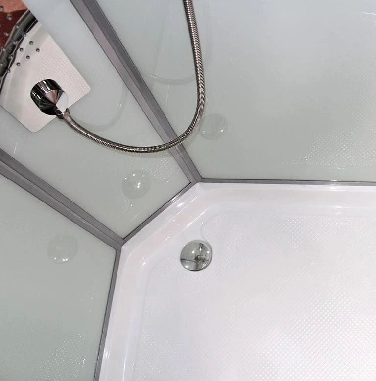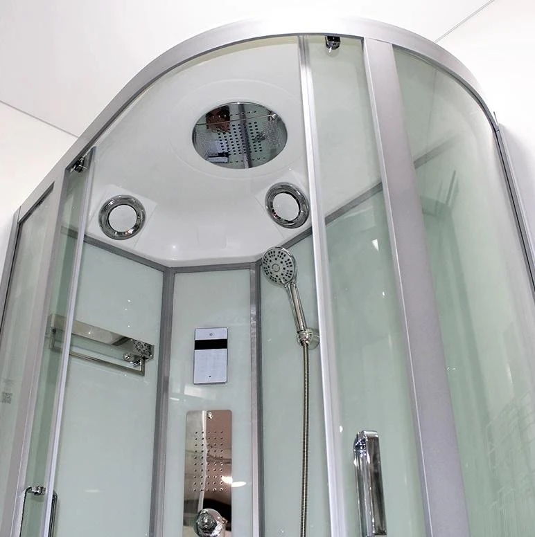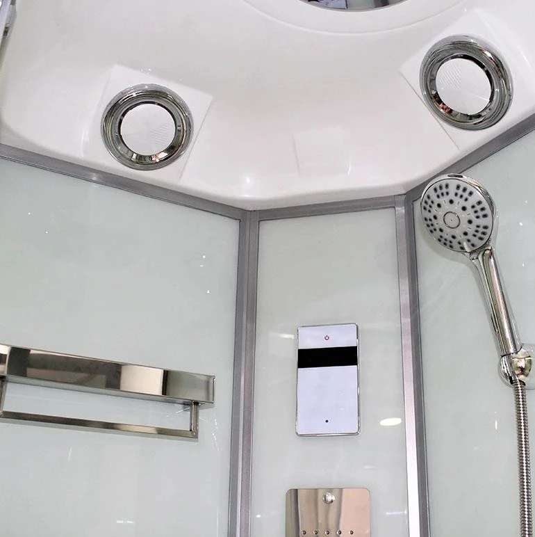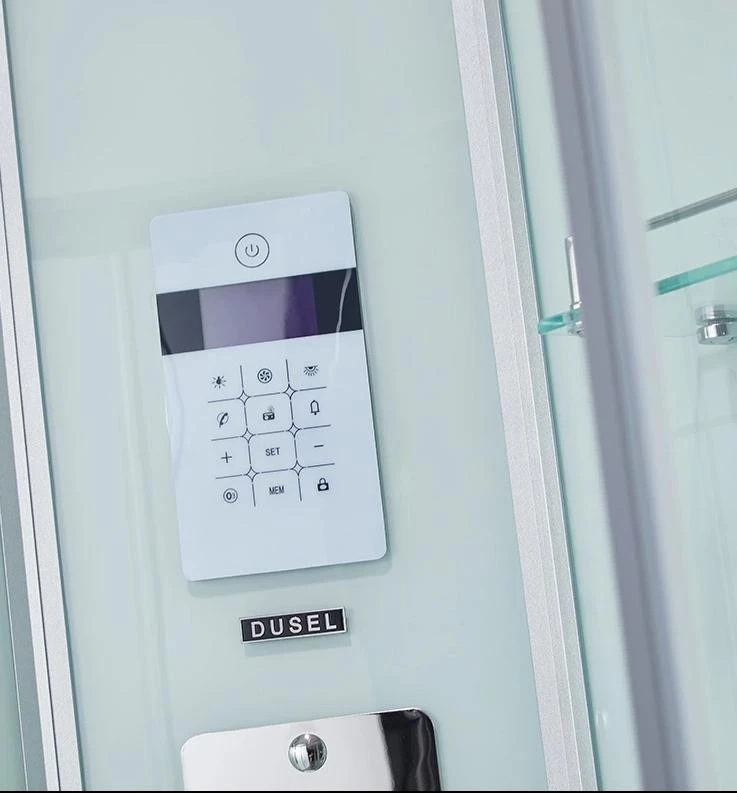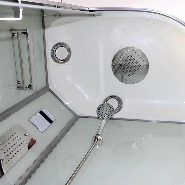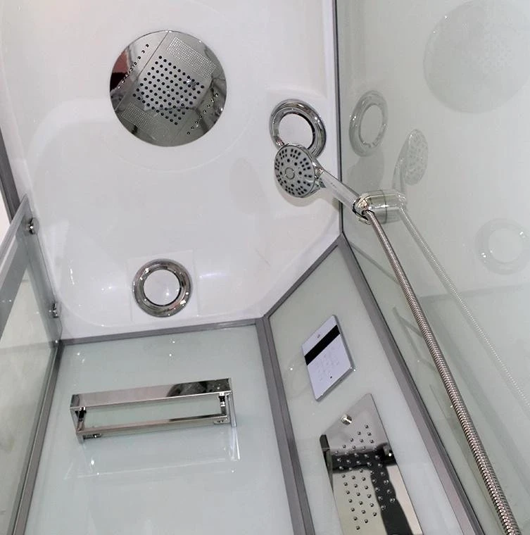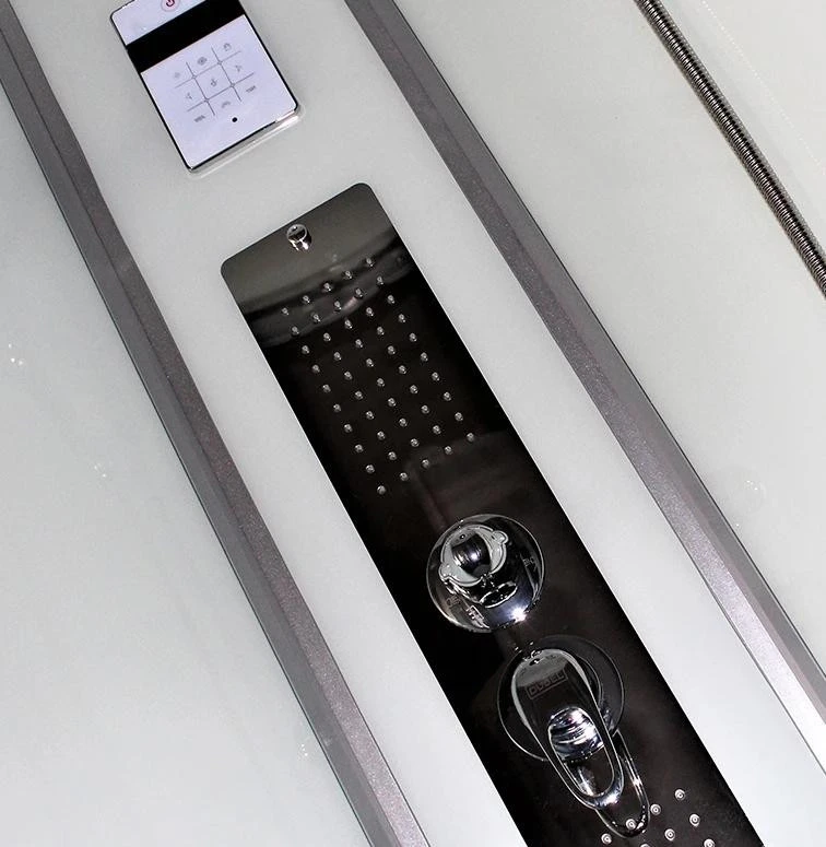 Бокс оснащений функцією гідромасажу, комплектується аксесуарами у вигляді полки для шампуню, ручок, а також електронною панеллю управління, за допомогою якої можна управляти функціями витяжки, радіо, LED підсвічування. Піддон йде в комплекті з сифоном. Змішувач зроблений з латуні, гідромасажна панель з нержавіючої сталі. Верхній душ має функцію "тропічний дощ".