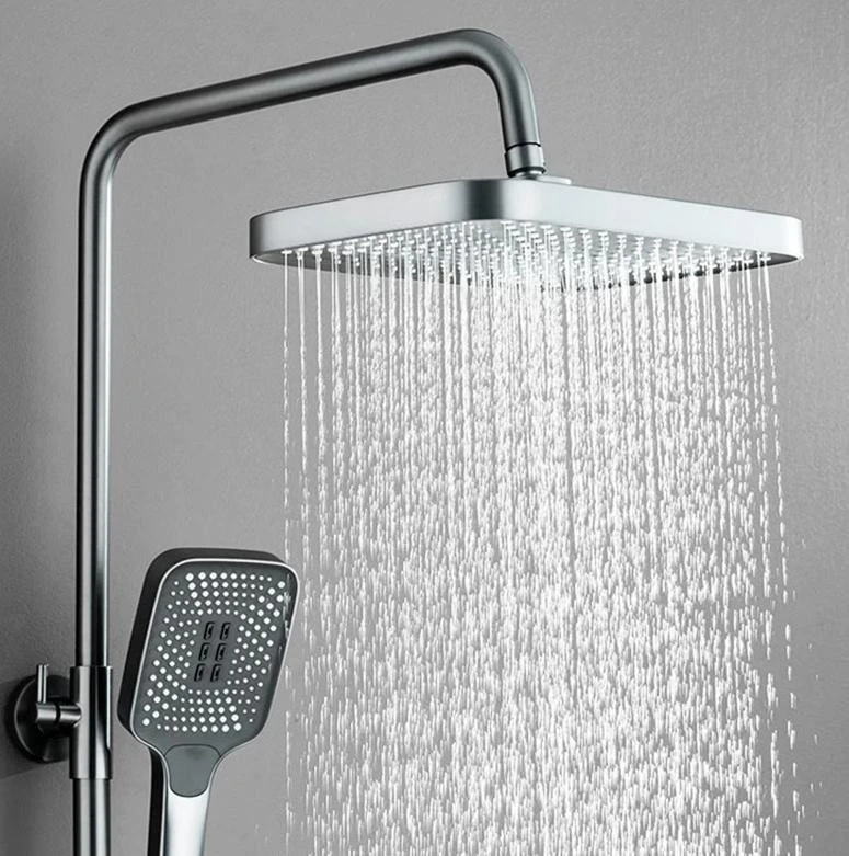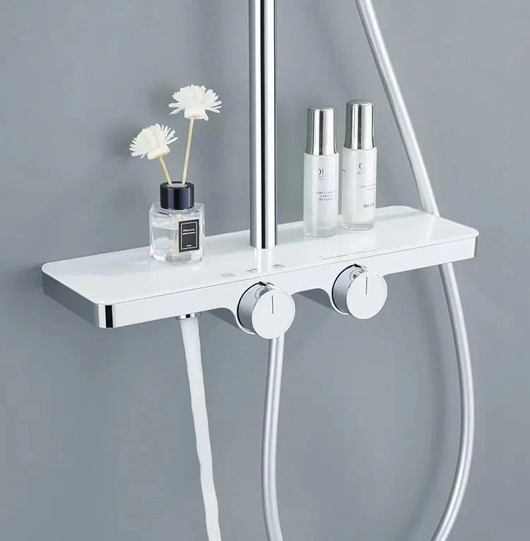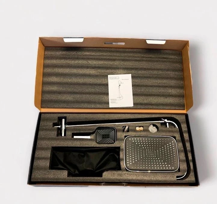 Система оснащена вбудованою полицею розміром 41×13 см, де можна зручно розмістити всі необхідні аксесуари. Верхній та ручний душ забезпечують різноманіття режимів водяного потоку, а термостат гарантує стабільну температуру води під час всього приймання душу.