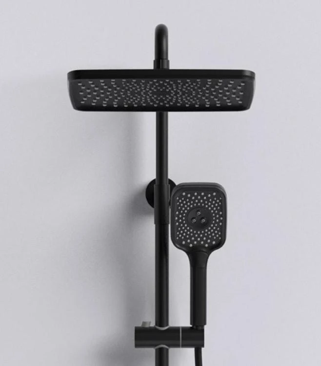 У системи прямокутний верхній душ, що регулюється по нахилу, з функцією тропічний дощ. Розмір верхньої лійки 34х22 см.