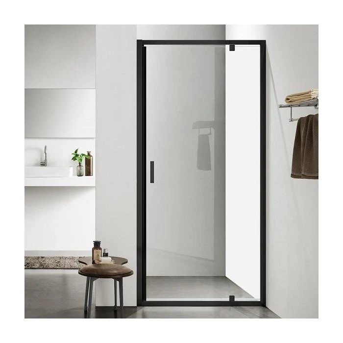Профіль виготовлений з алюмінію чорного матового кольору, а скло – загартоване товщиною 6 мм. Двері легко встановлюються на плитку або піддон. Ширина дверей регулюється від 990 до 1030 мм, рекомендований розмір отвору – 1000 мм.