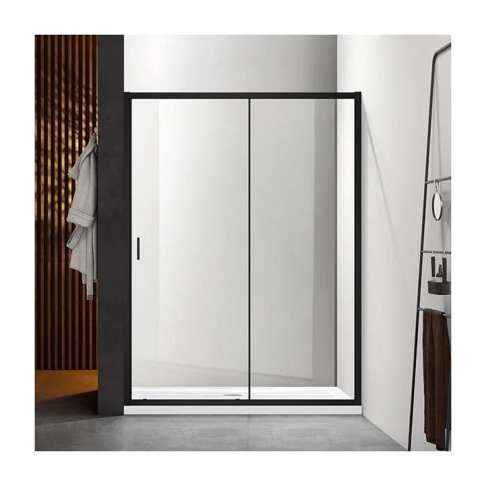 Розсувна душова двері Dusel FA517B Black Matt – сучасне рішення для облаштування ванної кімнати. Стильний чорний матовий профіль, загартоване скло товщиною 6 мм та надійна система роликів забезпечують довговічність і зручність використання. Завдяки універсальній конструкції двері можна встановлювати як з лівостороннім, так і з правостороннім відкриванням.