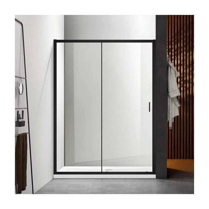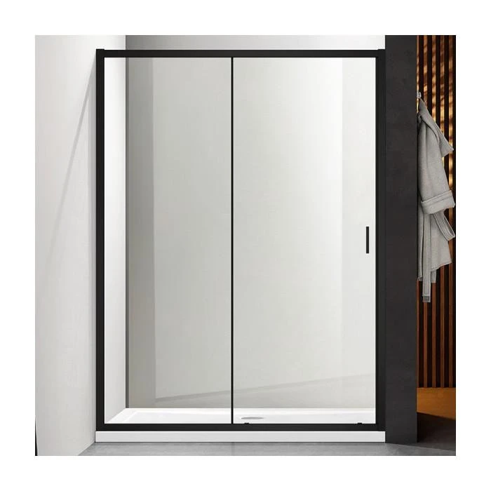 Розсувна душова двері Dusel FA517B Black Matt мають одну рухому стулку на металевих роликах і одну глуху стінку. Розсувну частину можна встановлювати як ліворуч, так і праворуч, що робить двері універсальними для будь-якого простору.