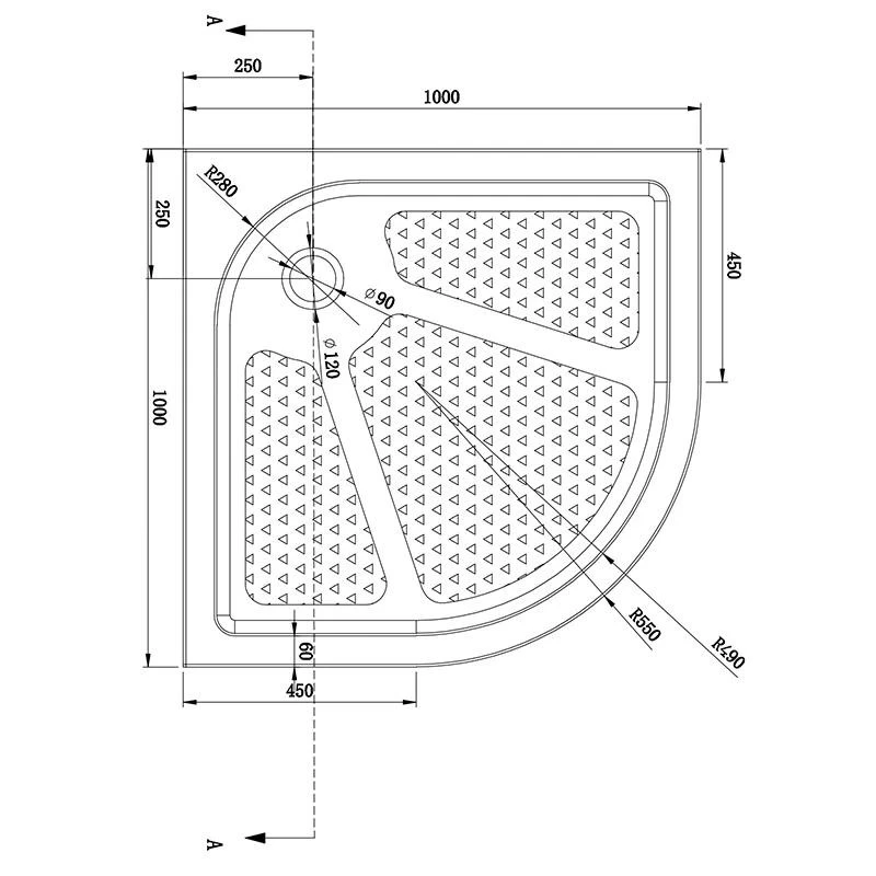 Душовий піддон Dusel D202R (напівкруглий, 100×100×15 см)