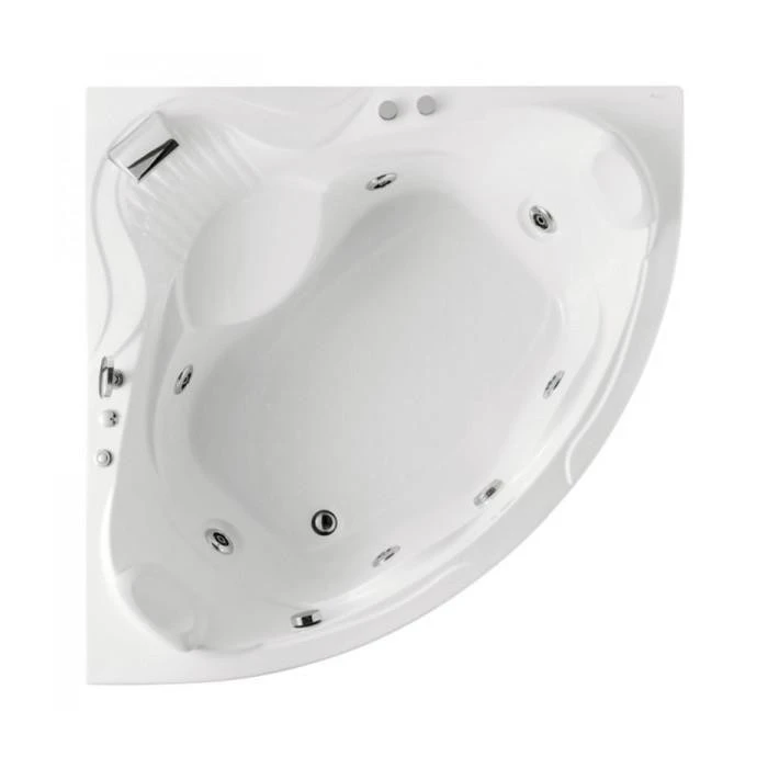 Ванна виконана з товстого листового акрилу та встановлена на потужний каркас із нержавіючої сталі. Це гарантує виняткову міцність, стійкість до навантажень та збереження білосніжного кольору на довгі роки. Усі врізні елементи, включаючи змішувачі та форсунки, виготовлені з міцної латуні.