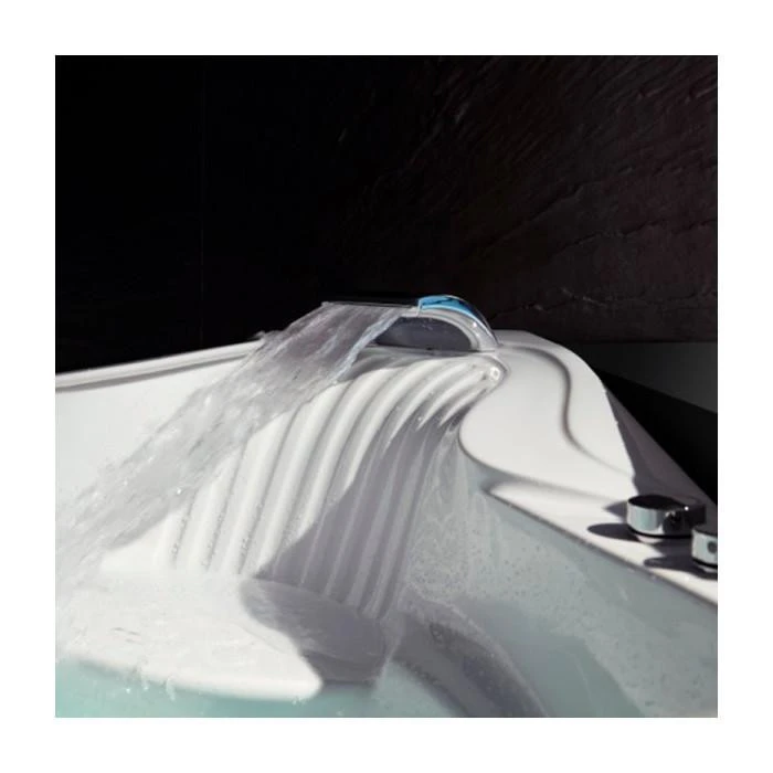 Насоси у гідромасажній ванні працюють практично безшумно, не порушуючи вашого спокою. Керуйте усіма функціями (масаж, підігрів, водоспад) за допомогою зручної сенсорної панелі.