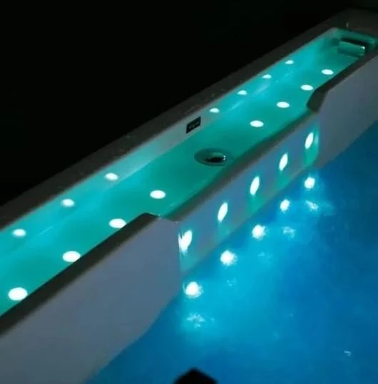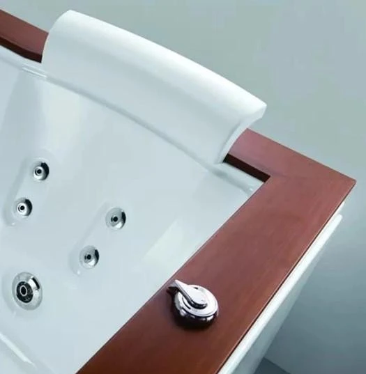 Модель комплектується системами гідромасажу та аеромасажу, підігрівом води, системою водоспаду з LED-підсвіткою. Насоси працюють майже безшумно. Краї ванни виконані з натурального тикового дерева – стійкого до вологи, гниття та перепадів температури, не потребує особливого догляду.