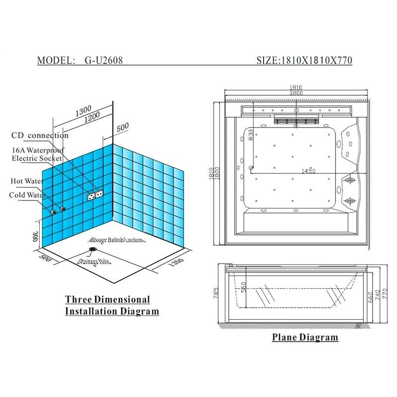 Гідромасажна ванна Golston G-U2608L поєднує комфорт, сучасний дизайн та функціональність. Завдяки квадратній формі та двом підголівникам вона зручно вміщує двох людей, перетворюючи купання на повноцінний релакс. Ванна призначена для установки в приміщенні та оснащена всім необхідним для гідромасажу та аеромасажу.