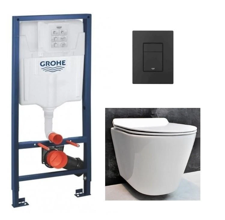 Надійний та стильний комплект для сучасної ванної кімнати: інсталяція GROHE Rapid SL, підвісний унітаз DUSEL AREZ та функціональна панель змиву Grohe EVEN.
