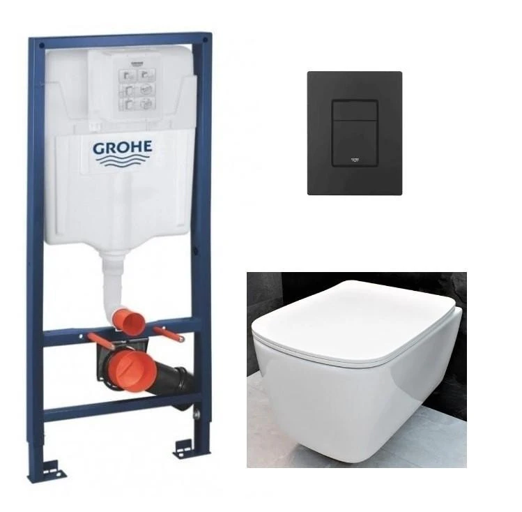 Комплект DUSEL BYRON + GROHE Rapid SL 38772001 — підвісний унітаз DUSEL у поєднанні з надійною інсталяцією GROHE — сучасне та практичне рішення для ванної кімнати, яке поєднує стиль, комфорт і високу гігієнічність.