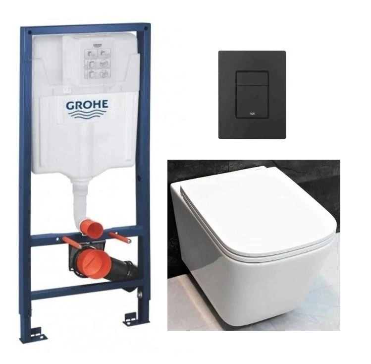 Надійний комплект для сучасної ванної кімнати: інсталяція GROHE Rapid SL, підвісний унітаз DUSEL IVIA та функціональна панель змиву Grohe EVEN.