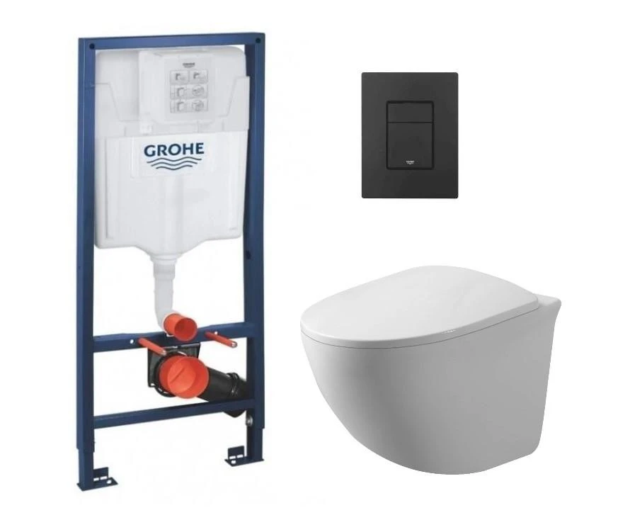 Комплект DUSEL SENTIA + GROHE Rapid SL 38772001 — підвісний унітаз DUSEL у поєднанні з надійною інсталяцією GROHE — сучасне та практичне рішення для ванної кімнати, яке поєднує стиль, комфорт і високу гігієнічність.