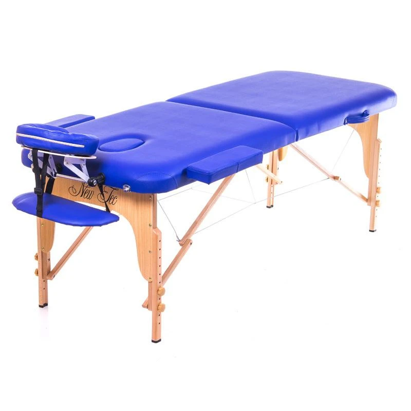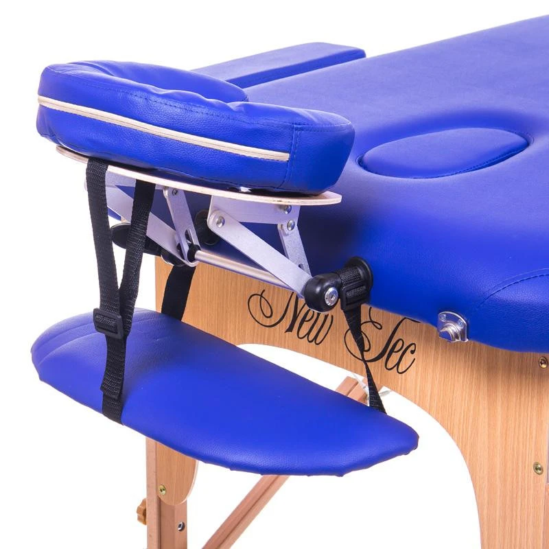 Масажний стіл Aspect New Tec укомплектований всім необхідним, а саме люверсом для особи, підлокітниками, регульованим підголовником, поличкою для рук, подушечкою під голову користувача. Оптимальний рівень амортизації забезпечує поролон, а підкладка з фанери не хитається і не скрипить під навантаженням пацієнта. Стіл витримує 250 кг навантаження, особливо популярний тренажерних і фітнес центрах і спортивних школах. Модель також широко використовується для масажних практик салонного і домашнього користування, під час проведення СПА-процедур, косметологічних маніпуляцій. Дерев'яний стіл для масажу, двосекційний Аспект Нью Тек має 2 річною гарантією, складного типу, представлений в багатій колірній гамі. В наявності всі гігієнічні сертифікати, а модель представлена в двох кольорах: бежевому і фіолетовому. Матеріалом виготовлення виступає благородний бук, а ніжки розкриті тонким шаром лаку. Вага моделі 14 кг, з легкістю відштовхує вологу і масла, а 0,8 см оббивка з PVCотталківает вологу і залишки масла. Для переміщення використовується комфортна ручка, а сам столик одним помахом трансформується в чемоданчик.