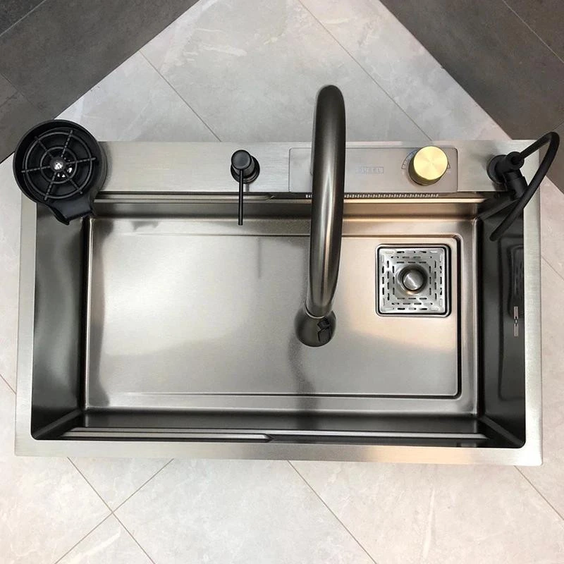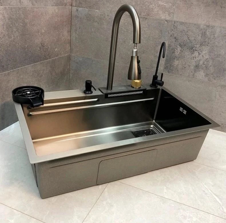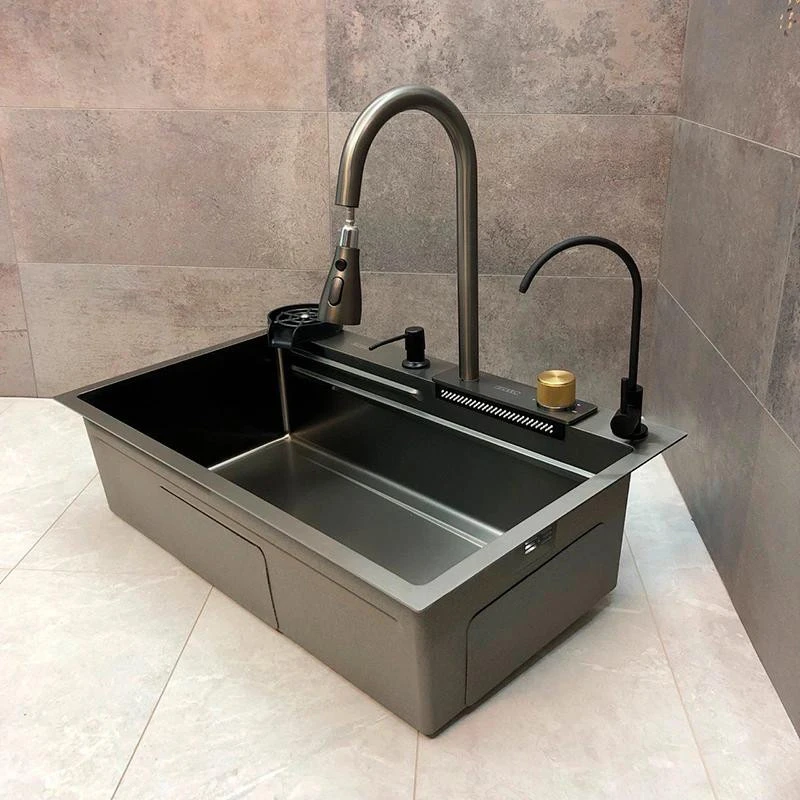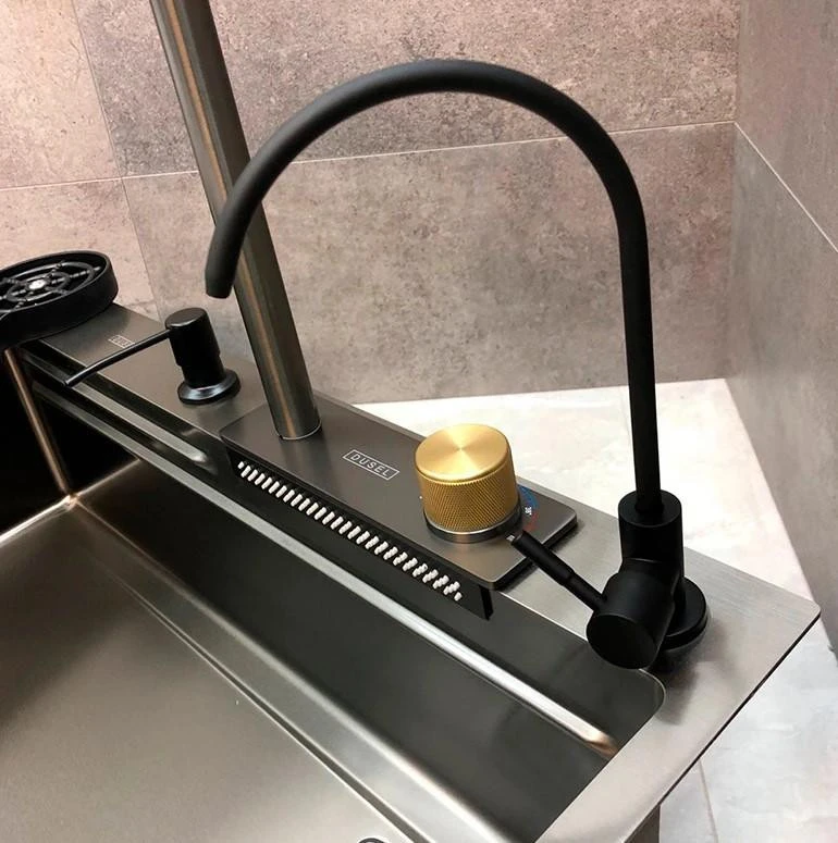 Кухонна мийка DUSEL SS304 Nano Black 750×460×220 мм з термостатом та повною комплектацією