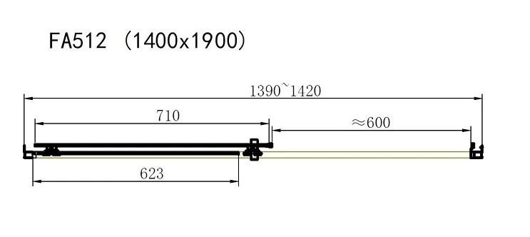 Раздвижная душевая дверь Dusel FA-512 оснащена одной подвижной створкой на двойных металлических роликах и одной глухой стенкой. Раздвижную часть можно устанавливать как слева, так и справа, что делает дверь универсальной для любого пространства.