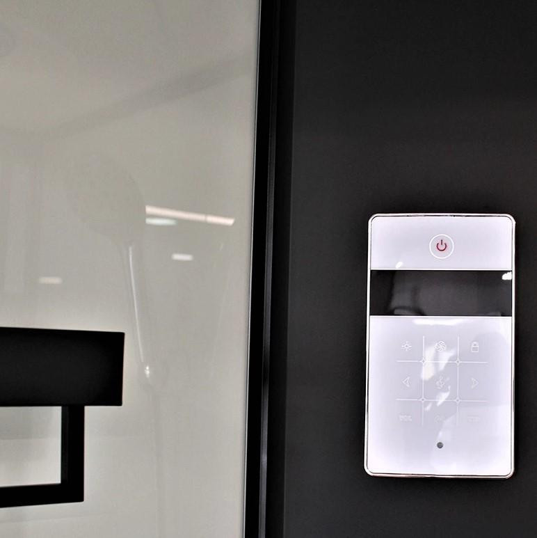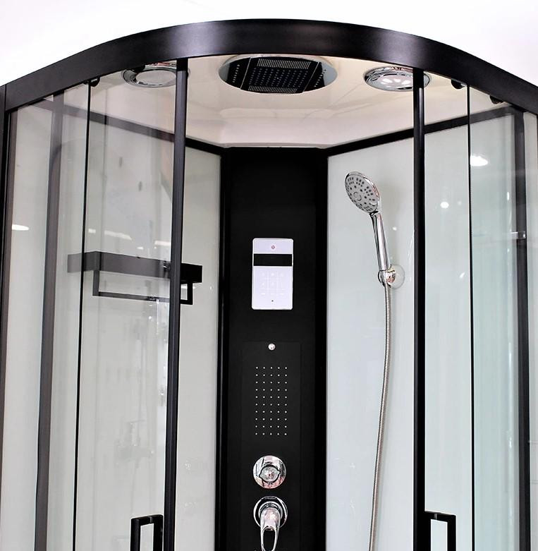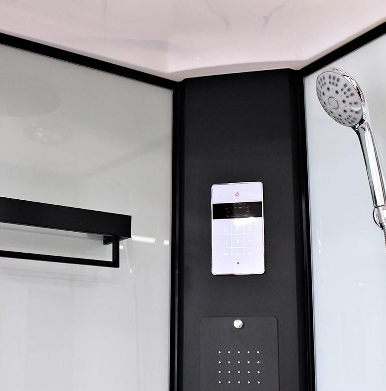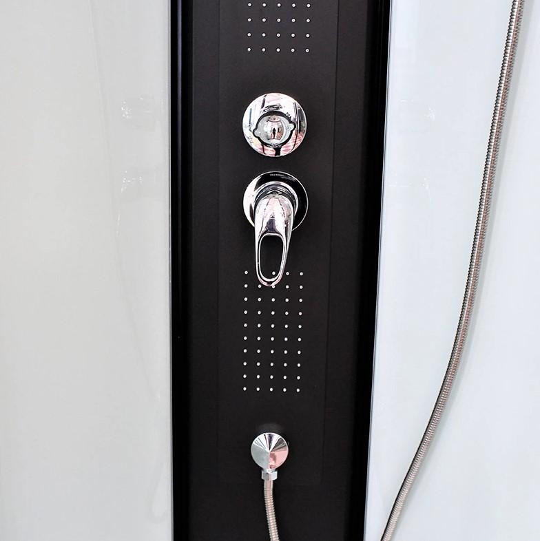Быстросъемные ролики; Верхний душ; Верхняя LED подсветка; Вытяжка; Гидромасажная панель; Панель управления; Полочка (стекло); Радио; Ручки (сталь); Сифон; Смеситель; Съемный душ (ручная лейка); |