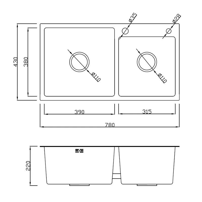 ✨ DUSEL 780×430×220 мм с покрытием Nano Black – это надёжное и стильное решение для современной кухни.