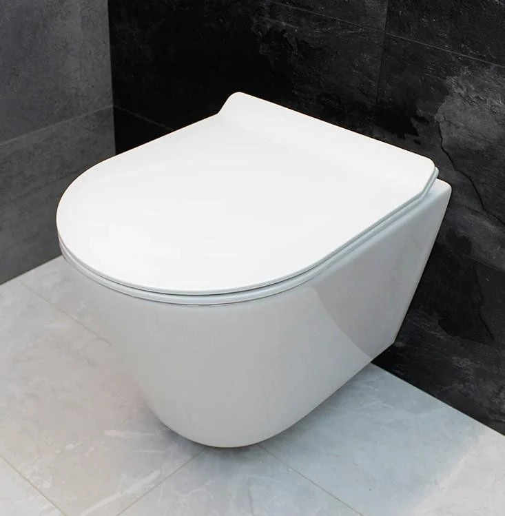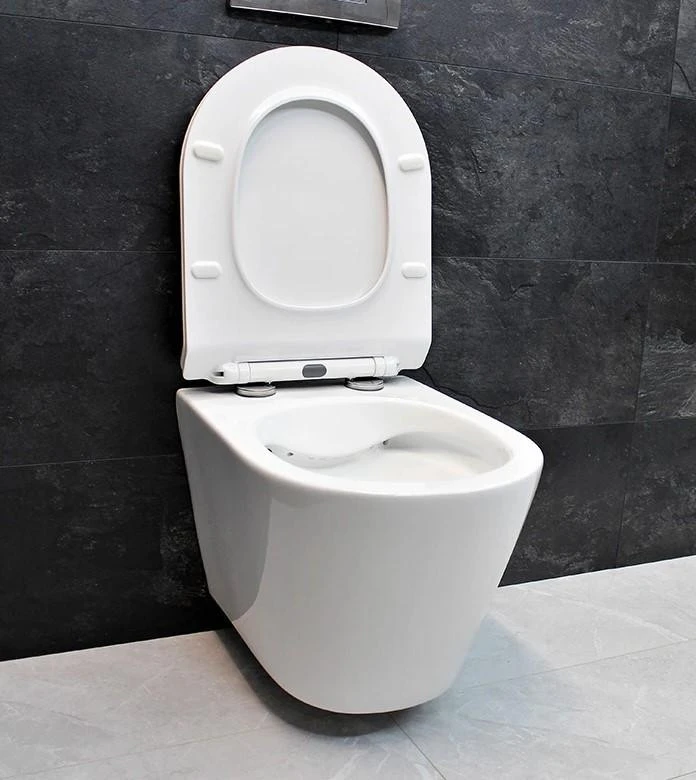 DUSEL AREZ DWHT10210230R — сучасний підвісний безободковий унітаз, виготовлений із високоякісної кераміки за технологією подвійного глазурування та подвійного випалу. Це забезпечує ідеально гладку глянцеву поверхню, яка захищає кераміку від розмноження бактерій, неприємних запахів та гарантує легкий догляд при змиві.