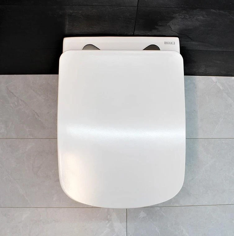 У комплектацію до унітазу DUSEL входить сидіння з дюропласту з функцією плавного закривання кришки "Soft Close" та системою швидкого монтажу/зняття сидіння "Quick-Fix" та якісний настановний комплект з кріпленнями.