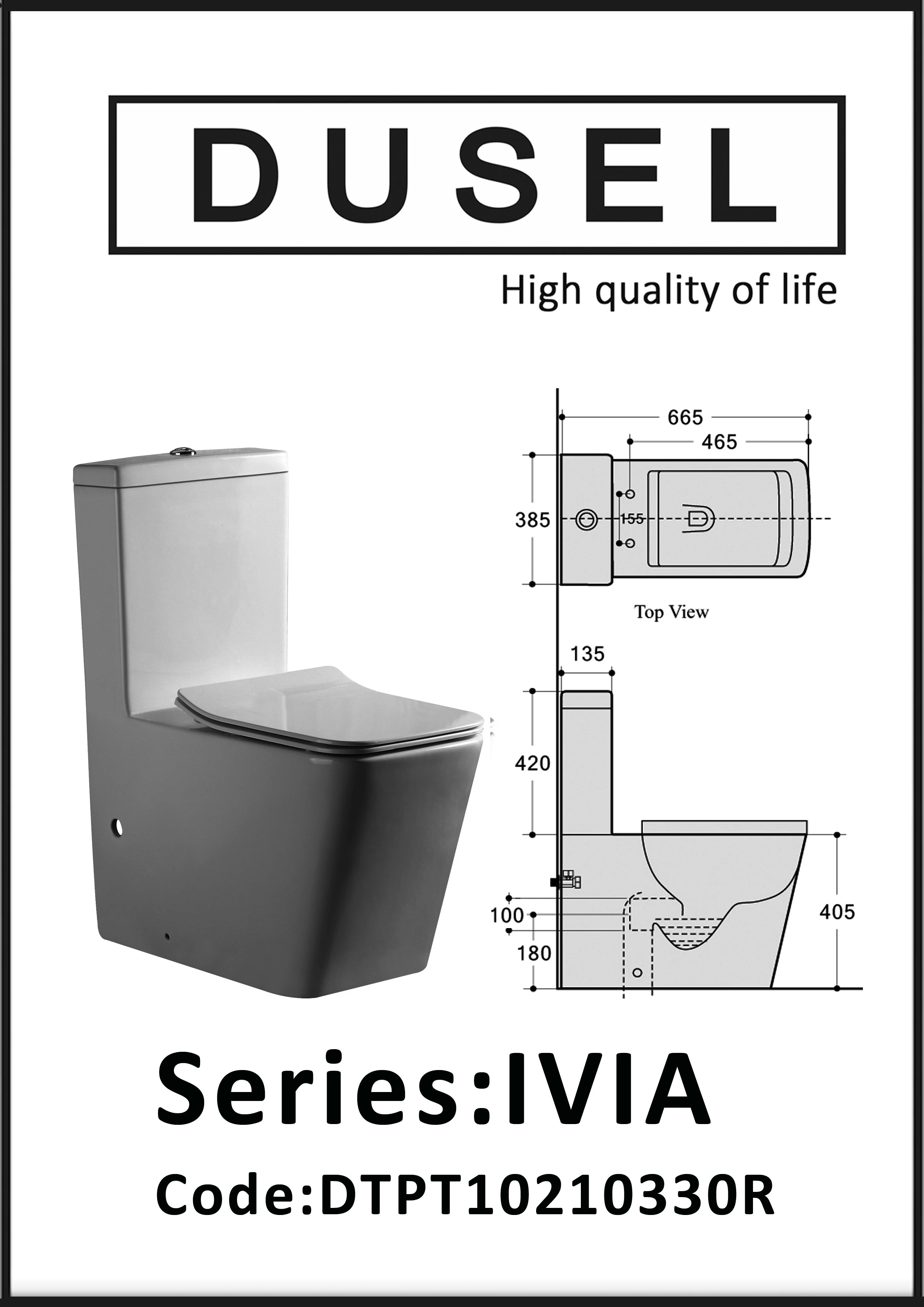 Компакт-унітаз DUSEL IVIA DTPT10210330R — безободковий компакт-унітаз із бачком і сидінням Soft Close з дюропласту, поєднує сучасний дизайн, комфорт і високу гігієнічність.