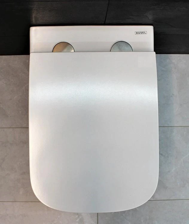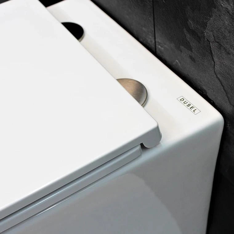 DUSEL IVIA DWHT10210330R — сучасний підвісний безободковий унітаз, виготовлений із високоякісної кераміки за технологією подвійного глазурування та подвійного випалу. Це забезпечує ідеально гладку глянцеву поверхню, яка захищає кераміку від розмноження бактерій, неприємних запахів та гарантує легкий догляд при змиві.
