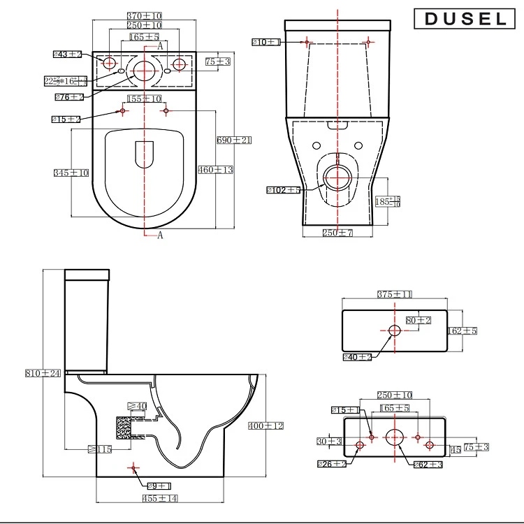 Підлоговий унітаз DUSEL SOUL являє собою чашу з обідком і горизонтальним зливом, поставляється в комплекті з швидкознімним дюропластовим сидінням Soft Close, бачком з нижнім підведенням води і настановних комплектом.