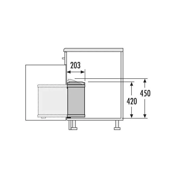 Система оснащена стаціонарною кришкою, яка щільно закриває відро після зачинення дверцят. Внутрішні пластикові контейнери по 8 л з ручками легко виймаються для очищення, а завдяки боковому кріпленню частину простору в шафі можна використовувати для інших рішень (бутилочниця, полиці тощо).